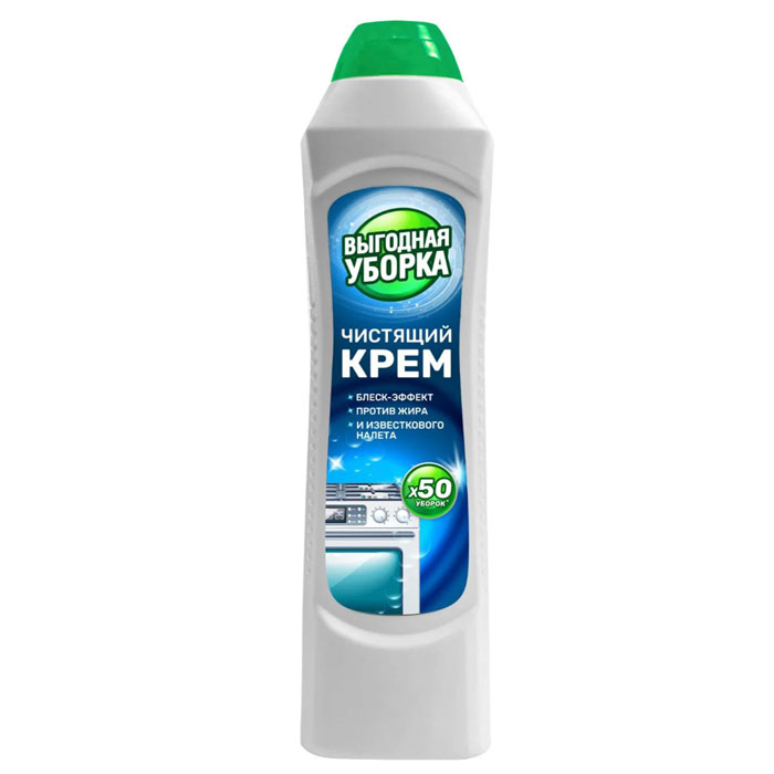 Универсальный чистящий крем из новой линейки Выгодная уборка порадует своим высоким качеством и низкой ценой.Чистит до блеска и не царапает, активно борется с пригоревшим жиром, известковым налетом, трудно выводимыми загрязнениями.